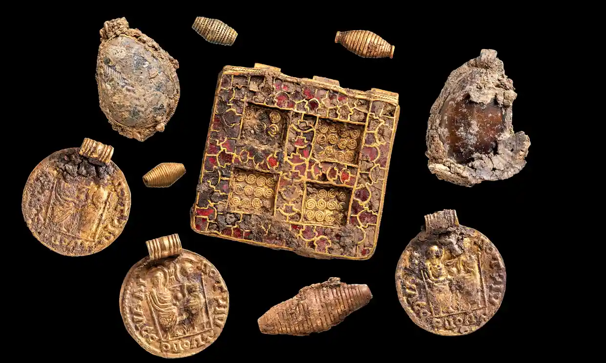 medieval female burial 2 December 23, 2022 1240 × 744 Early medieval female burial site is ‘most significant ever discovered’ in UK Collection of pendants from a necklace.